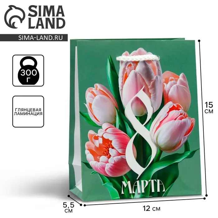 Пакет подарочный ламинированный, упаковка, «8 марта», S 12 х 15 х 5.5 см