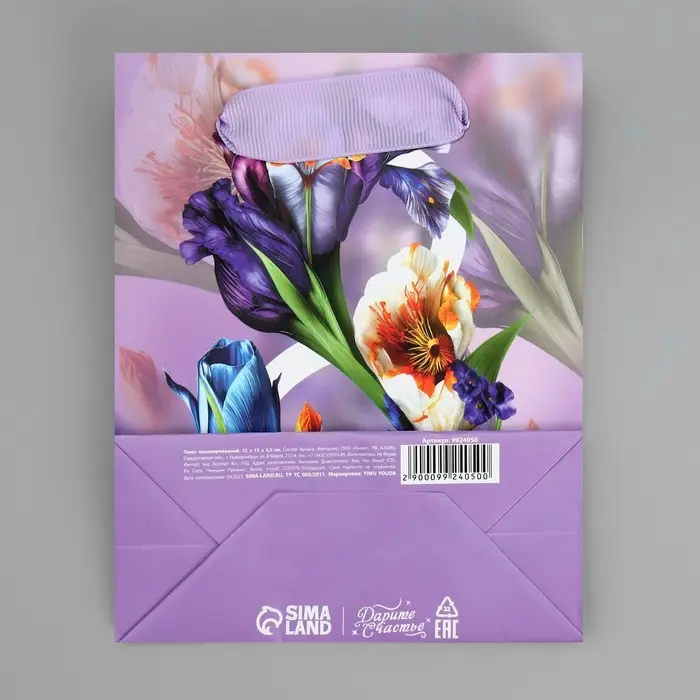 Пакет подарочный ламинированный, упаковка, «8 марта», S 12 х 15 х 5.5 см