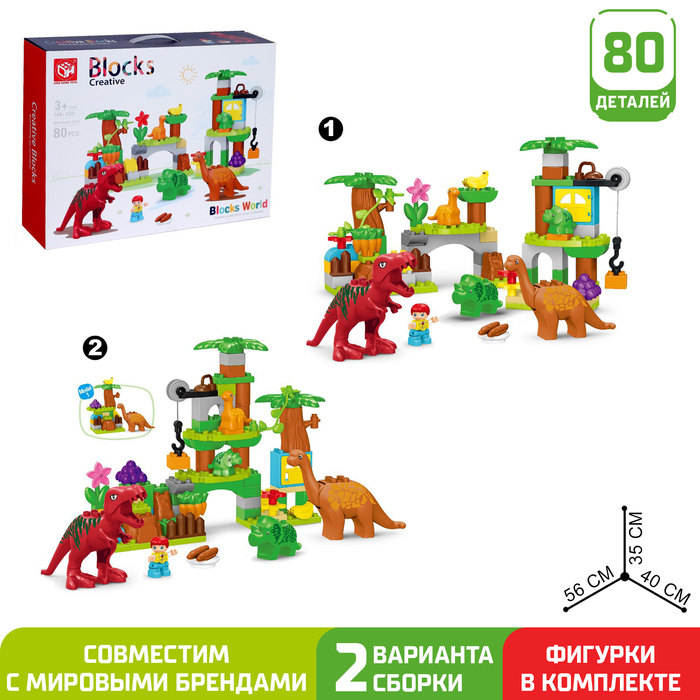 Конструктор «Парк динозавров», 2 варианта сборки, 80 деталей