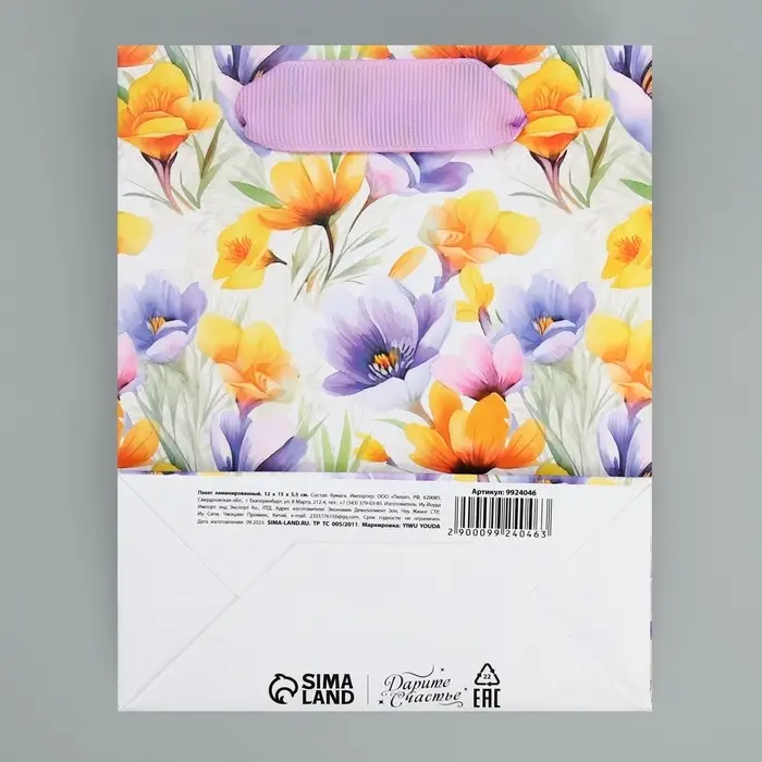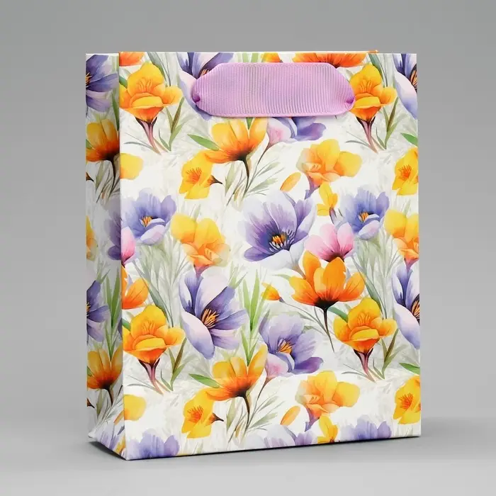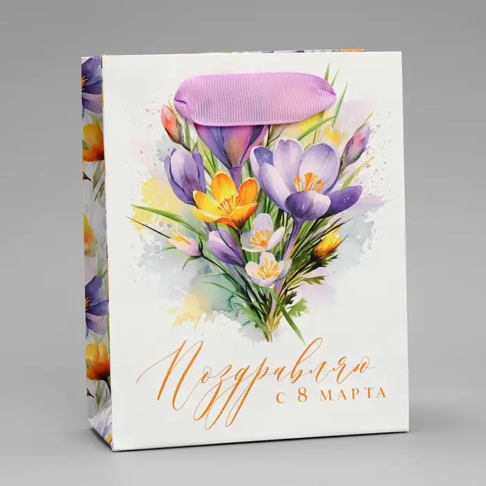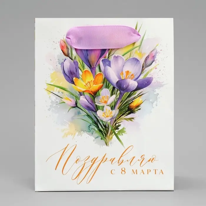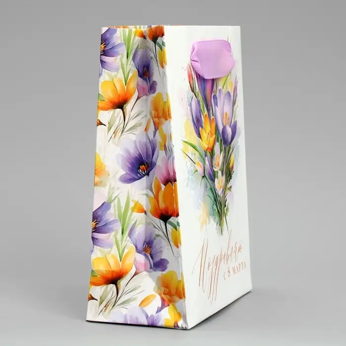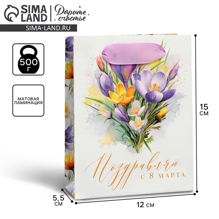 Пакет подарочный ламинированный, упаковка, «С 8 марта», цветы, S 12 х 15 х 5.5 см