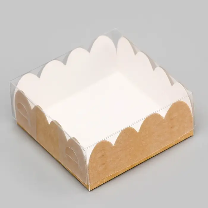 Коробка для печенья с прозрачной крышкой - удобное и стильное решение для упаковки и демонстрации свежих печенек. Прозрачная крышка позволяет видеть аппетитное содержимое, делая печенье еще более заманчивым. Эта коробка прекрасно подходит для подарков, продажи или для хранения домашних угощений, добавляя им привлекательности и сохраняя их свежесть.