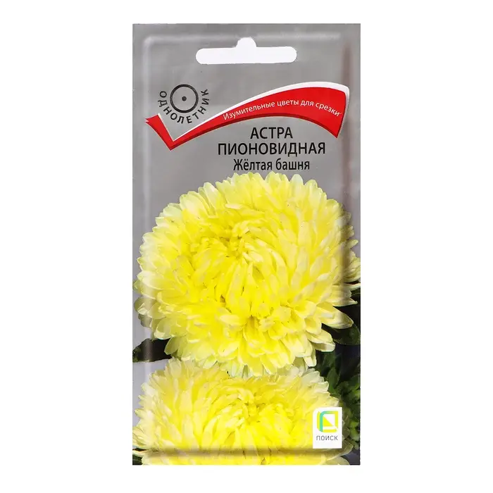 Семена цветов Астра пионовидная "Жёлтая башня", 0,3гр.