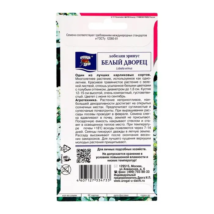Семена цветов Лобелия "Белый дворец", 0,03г