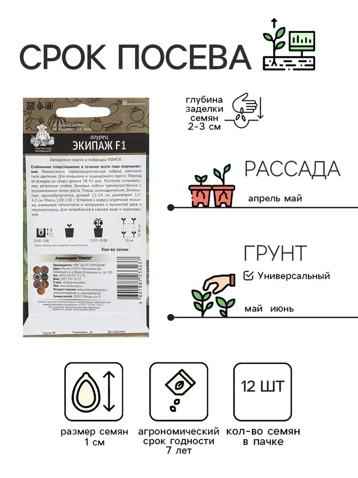 Семена Огурец "Экипаж", F1, 12 шт