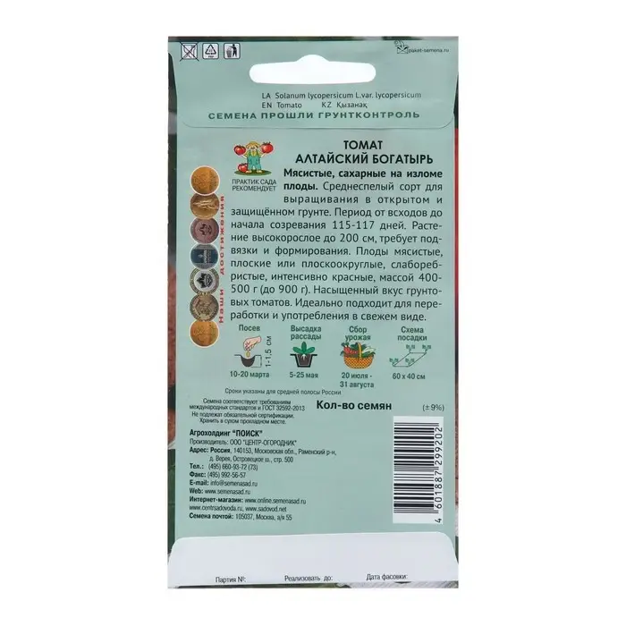 Семена Томат "Алтайский Богатырь", 0,1 г