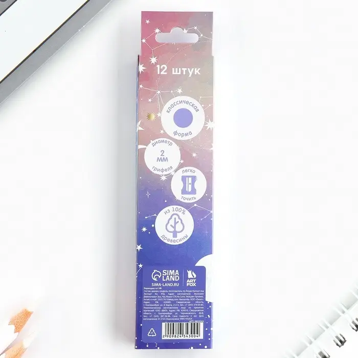 Карандаш простой, чёрнографитный без ластика «Космос»