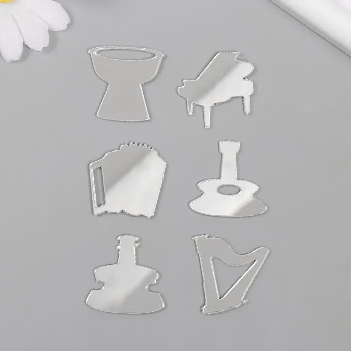 Декор для творчества пластик зеркальный "Музыкальные инструменты" набор 6 шт
