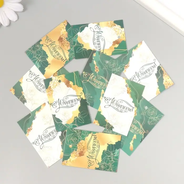 Бирка картон "С Юбилеем. Малахит" Бирка картон "Осень Олень" набор 10 шт (5 видов) 4х6 см