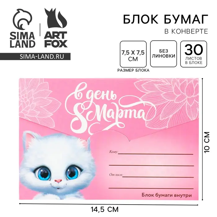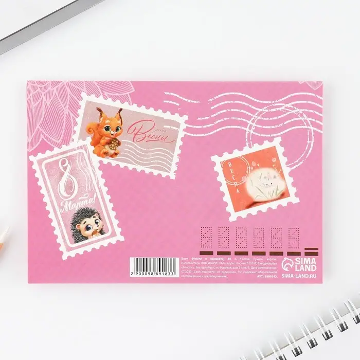Блок бумаги 30 листов в конверте «С 8 Марта»