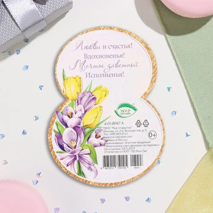 Мини-открытка «8 Марта», 8.5×11.5 см