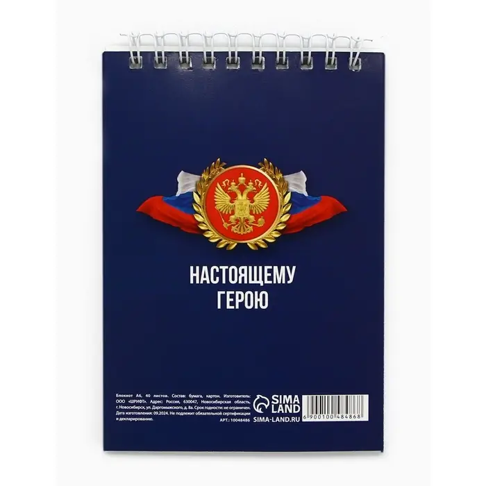 Блокнот А6, 40 листов в клетку, обложка картон «23 февраля»