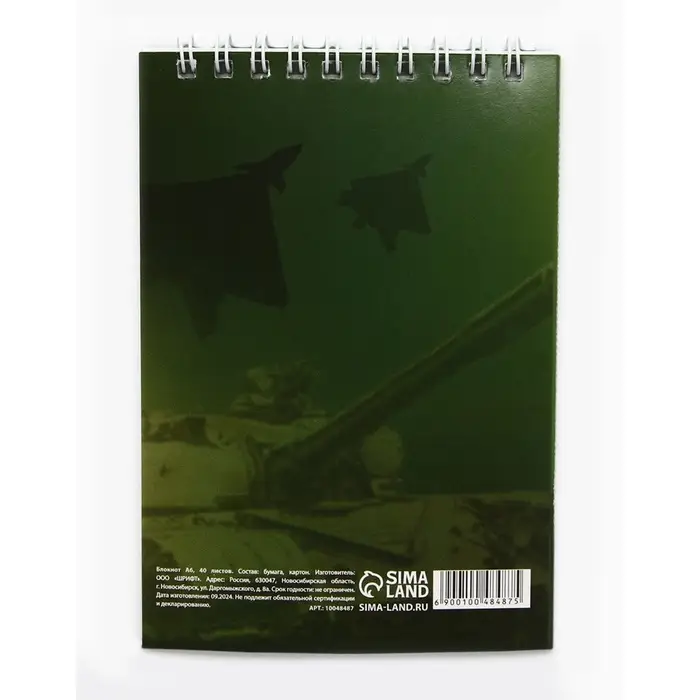 Блокнот А6, 40 листов в клетку, обложка картон «Танк. 23 февраля»
