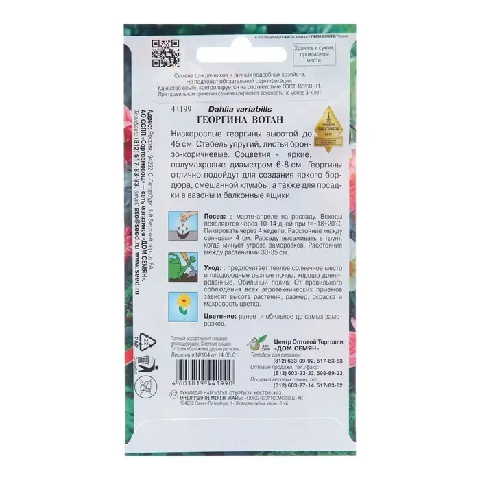 Семена цветов Георгина Веселые ребята, О, 0,2г