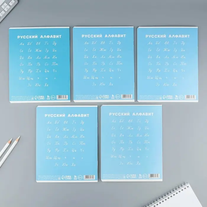 Комплект тетрадей из 5 штук, 48 листов в клетку Calligrata "Любимые питомцы", обложка мелованная бумага, блок №2, белизна 75% (серые листы)