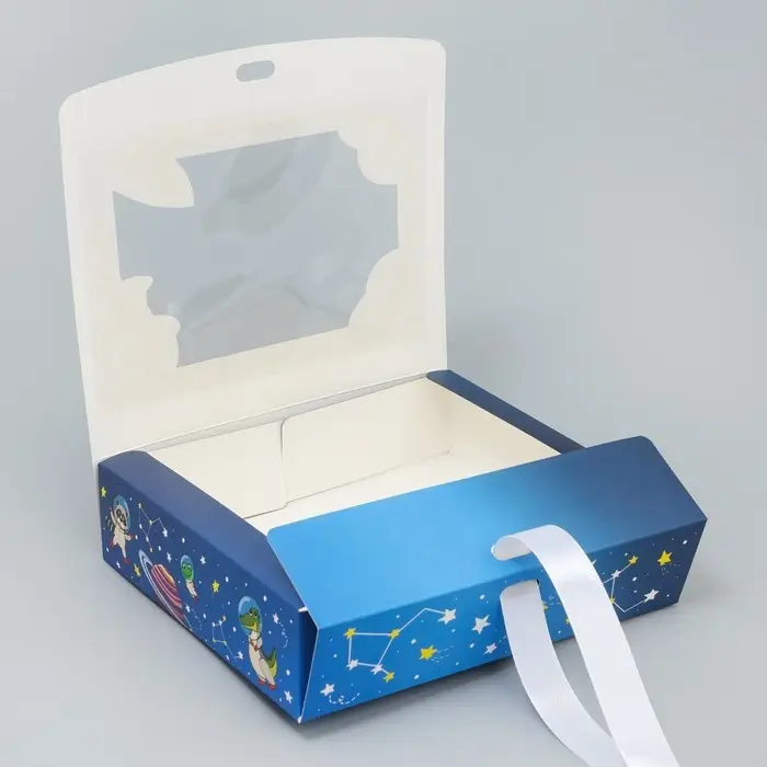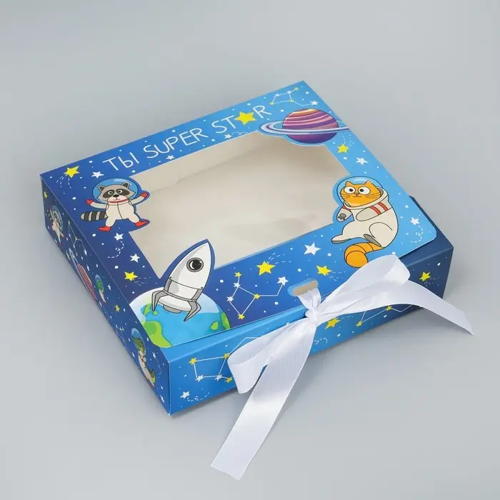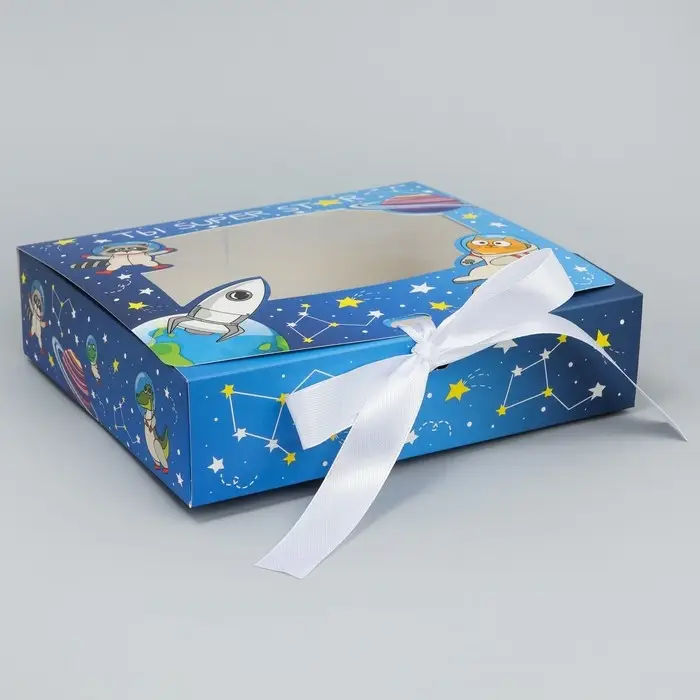 Коробка подарочная складная с пластиковым окном, упаковка, «Космос», 20 х 18 х 5 см