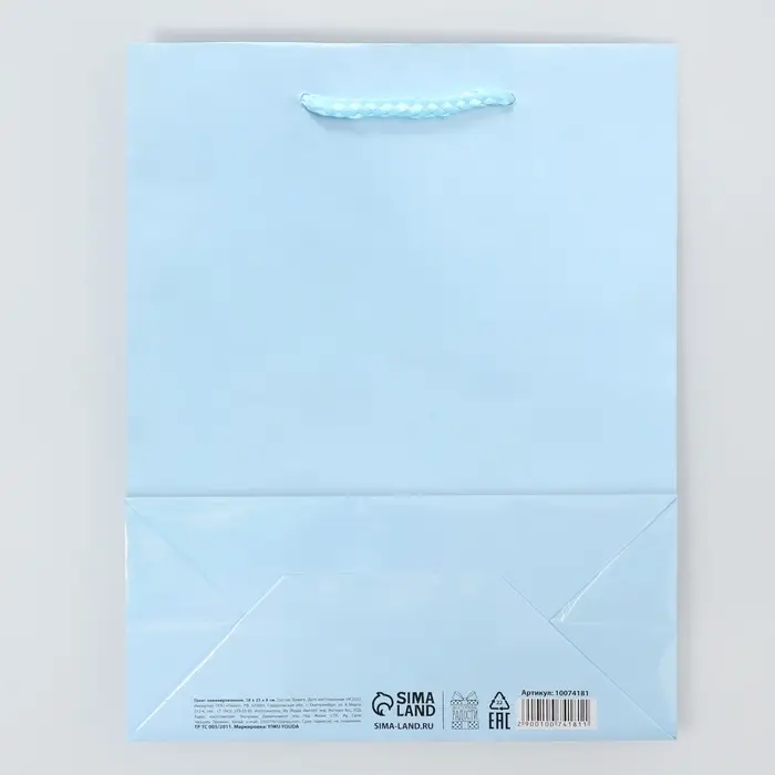 Пакет подарочный ламинированный, упаковка, «Голубой», MS 18 х 23 х 8 см