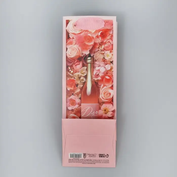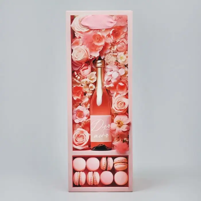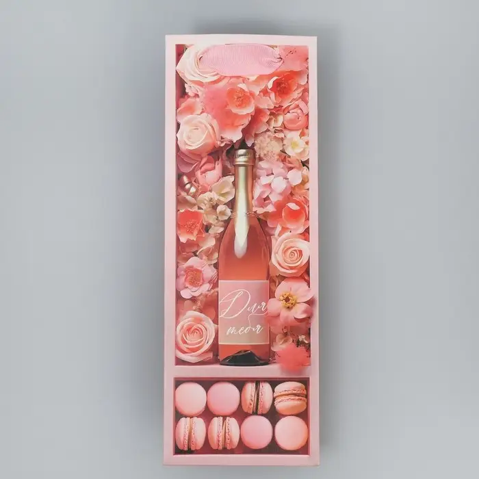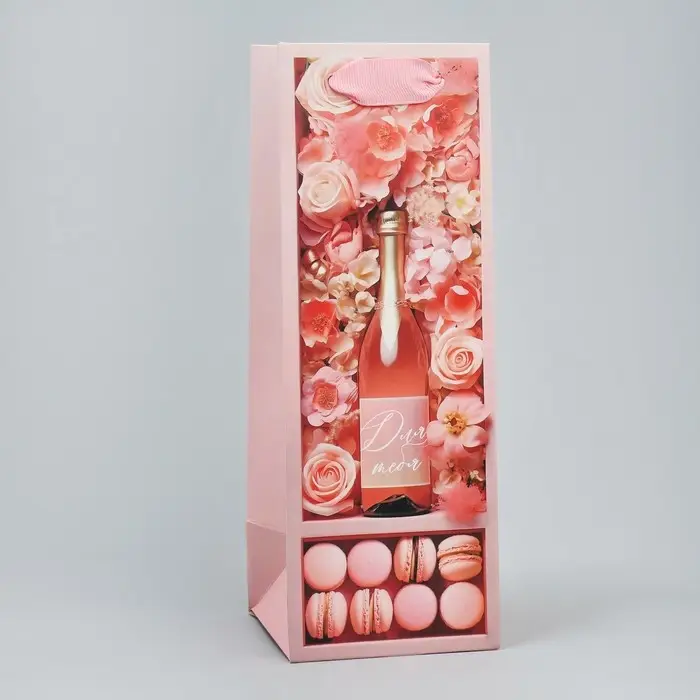 Пакет подарочный под бутылку, упаковка, «Розовое настроение», 9 х 25 х 8.5 см