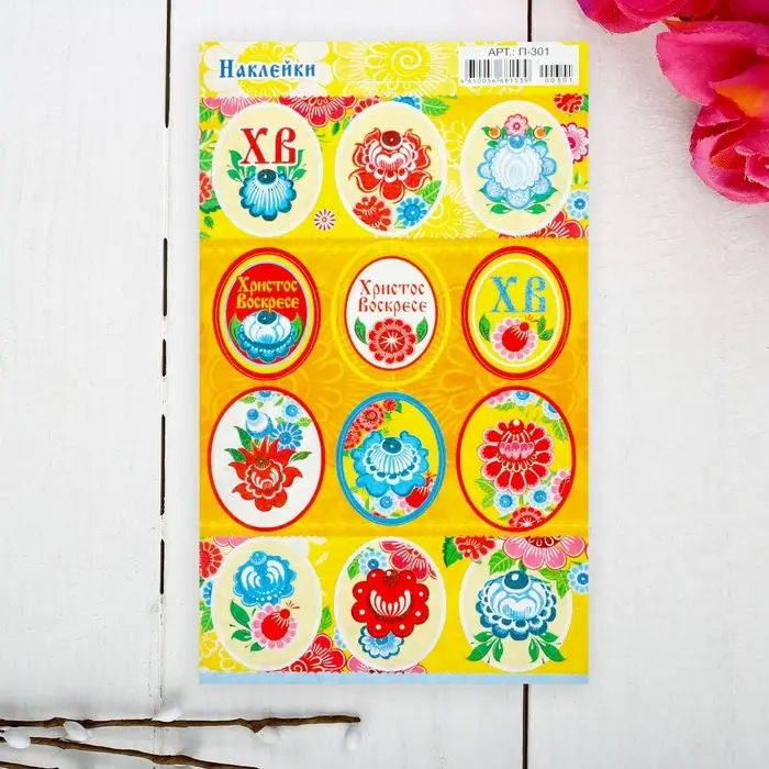 Наклейки пасхальные «Городец» с глиттером
