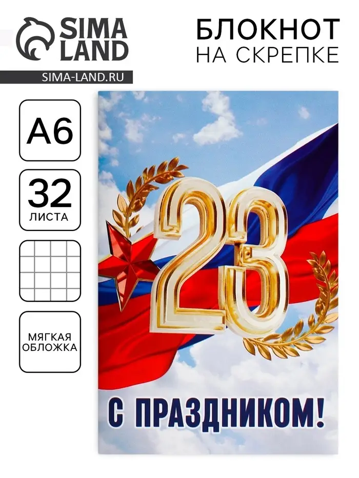Блокнот А6, 32 л. в клетку «С праздником, 23 февраля»