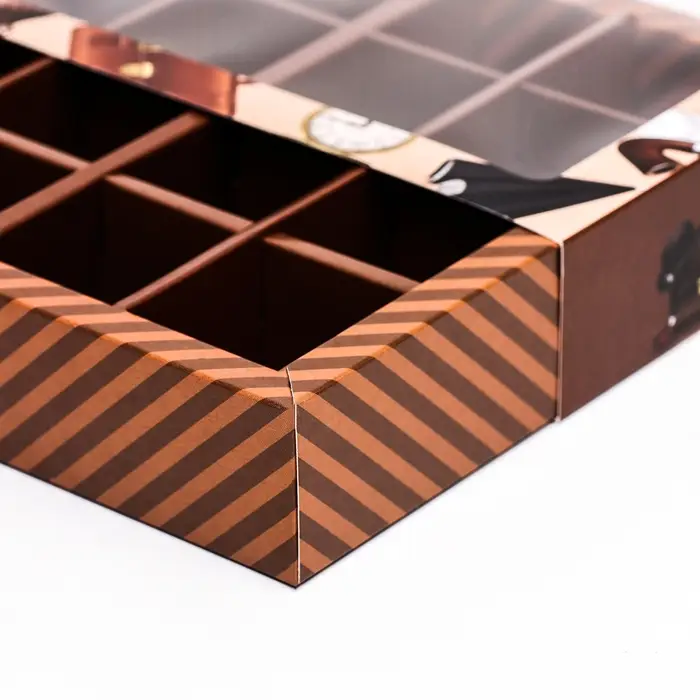 Подарите сладкие моменты лучшему мужчине! Шоколадная коробка на 16 ячеек – это элегантное решение для презентов, соединяющее утонченность дизайна и практичную функциональность. Оформленная в коричневых тонах, эта коробка гармонично подчеркнет индивидуальность получателя.