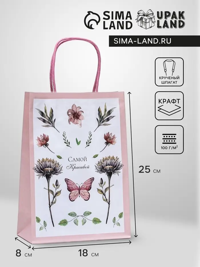 Пакет крафт "Самой нежной" 32 х 19,5 х 37 см