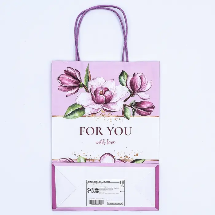 Пакет крафт «Для тебя с любовью» 18×8×25 см