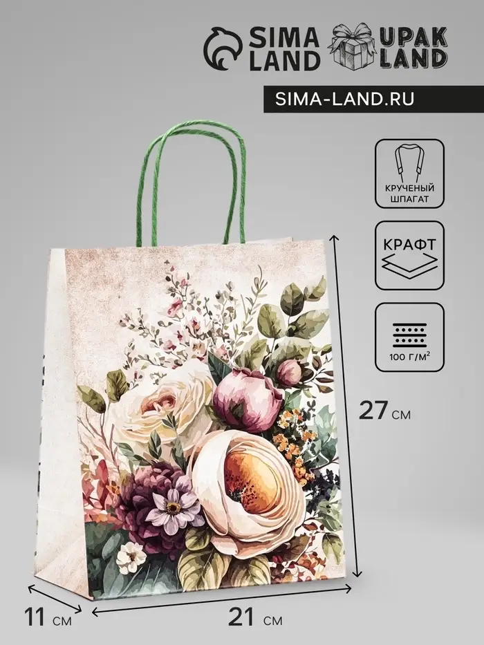 Пакет подарочный крафт "С 8 Марта" 25 х 12 х 32 См