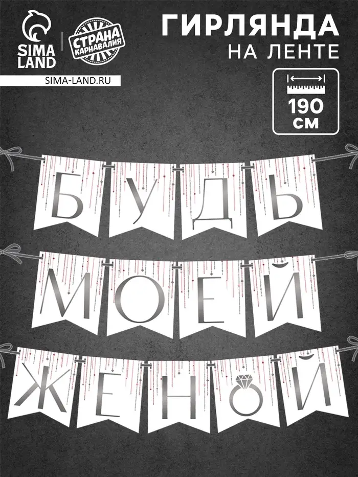 Гирлянда на ленте «Будь моей женой», свадебная, дл. 190 см