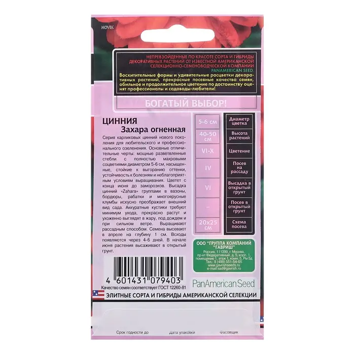 Семена Цинния "Захара", ц/п, клубничная, 5 шт.