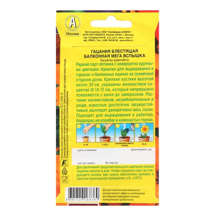 Семена цветов Гацания "Сияние солнца", Сем. Алт, ц/п, 0,1 г