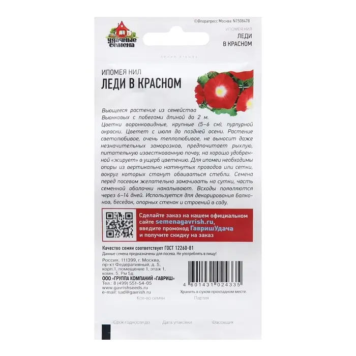 Вьющееся растение из семейства Вьюнковые с побегами длиной до 2 м. Цветки воронковидные, крупные (5-6 см), пурпурной окраски. Растение очень теплолюбивое, светолюбивое, не выносит даже незначительных заморозков, предпочитают рыхлую, питательную известкованную почву, на хорошо удобренной "жирует" в ущерб цветению. Для ипомеи необходимы опоры из вертикально натянутых проводов или сетки, вокруг которой станут обвиваться стебли. Семена перед посевом желательно замачивать на сутки. Всходы появляются через 6-14 дней. Используется для декорирования балконов, беседок, опорных стенок и строений в саду.