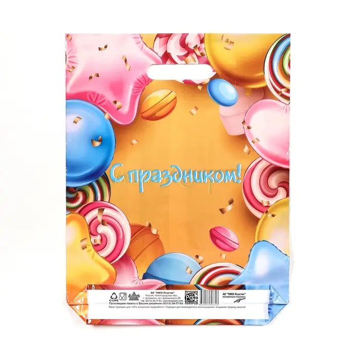Пакет «С праздником», полиэтиленовый с вырубной ручкой, 30×39.5 см, 60 мкм