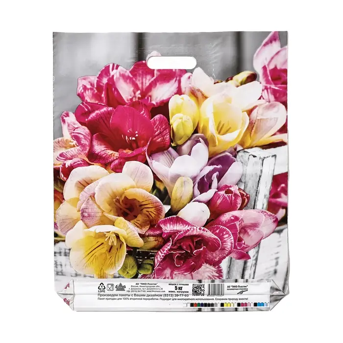 Пакет полиэтиленовый с вырубной ручкой, прочный с оригинальным рисунком.