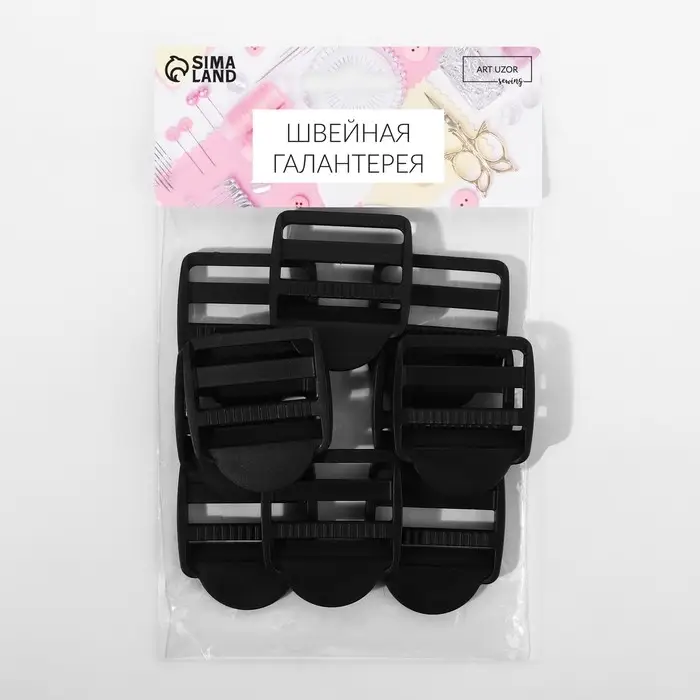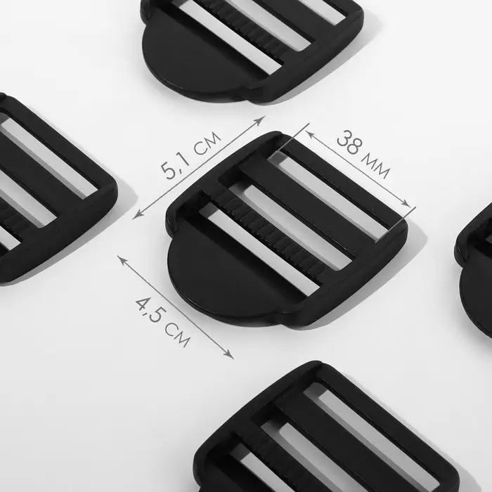 Пряжка регулирующая, трёхщелевая, вн. ширина=38 мм, s=3.5 мм, 10 шт., чёрная