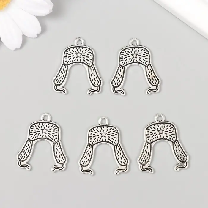 Металлический элемент, декоративная подвеска «Арт Узор. Шапка ушанка со звездой», 2.4×2.6 см