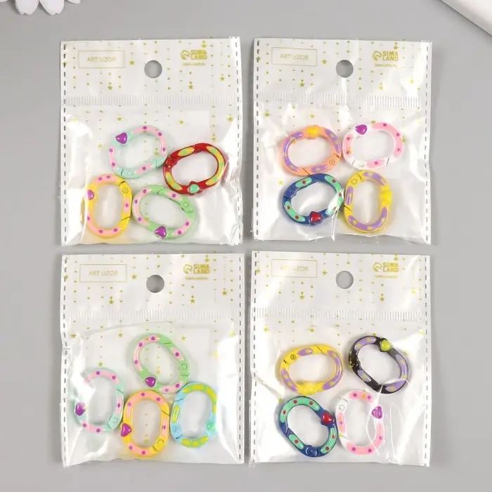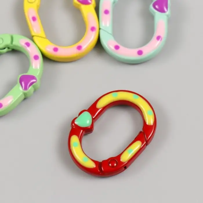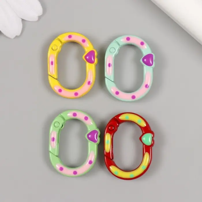 Карабин металл "Овал. Сердечко и горошины" МИКС 2,7х2 см