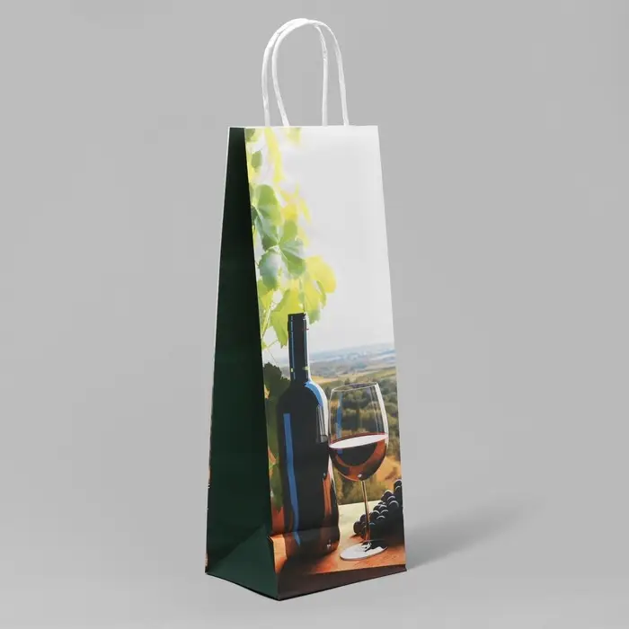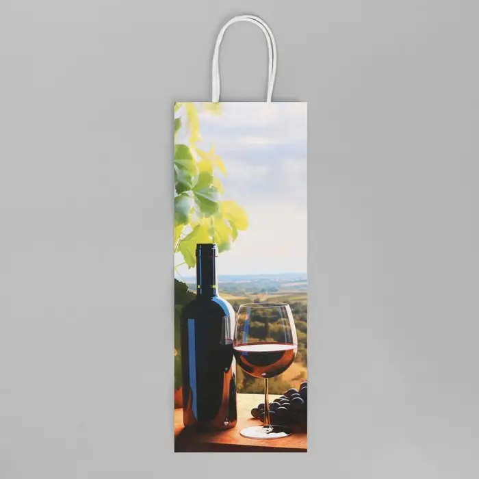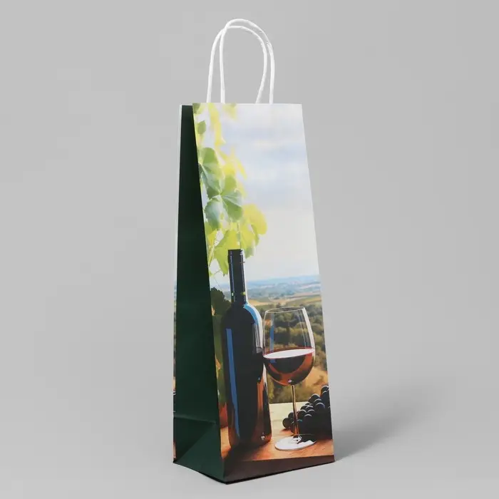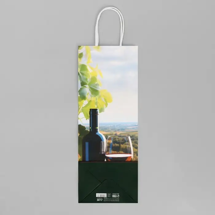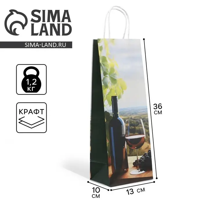 Пакет подарочный под бутылку, упаковка, «Вино», белый крафт, 13 х 36 х 10 см