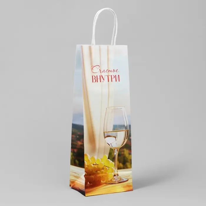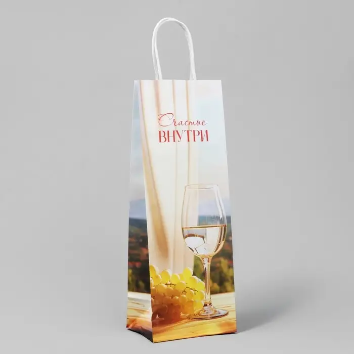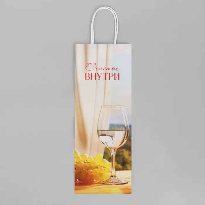 Пакет подарочный под бутылку, упаковка, «Счастье внутри», белый крафт, 13 х 36 х 10 см