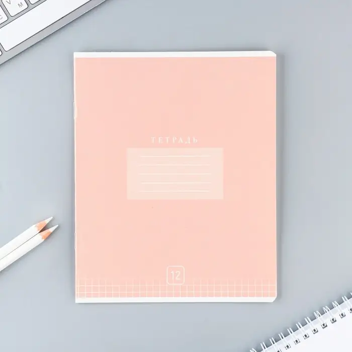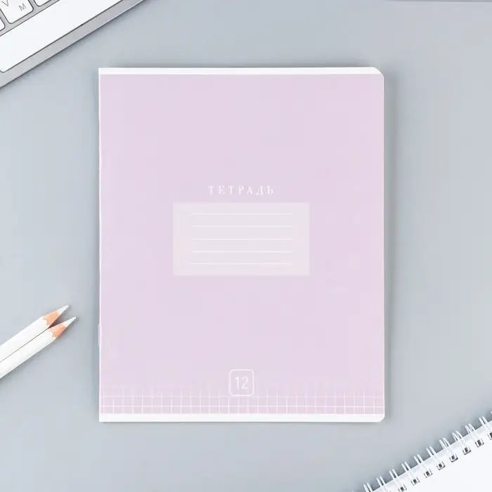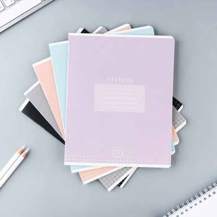 Тетрадь в клетку 12 листов А5, на скрепке «Цветная обложка», обложка мелованный картон, блок №2, 5 видов МИКС