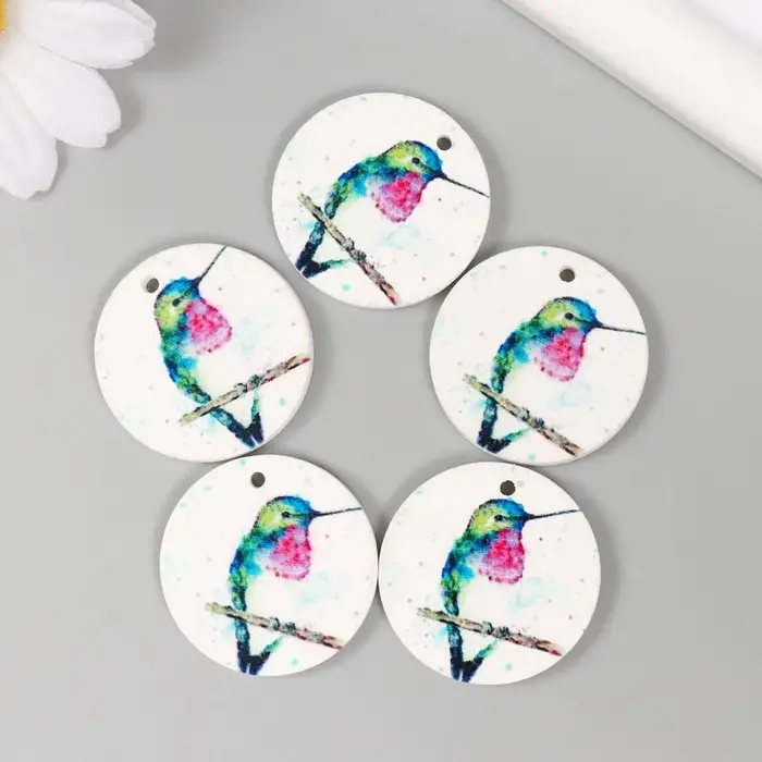 Декор для творчества дерево "Круг. Колибри на веточке" d=3 см
