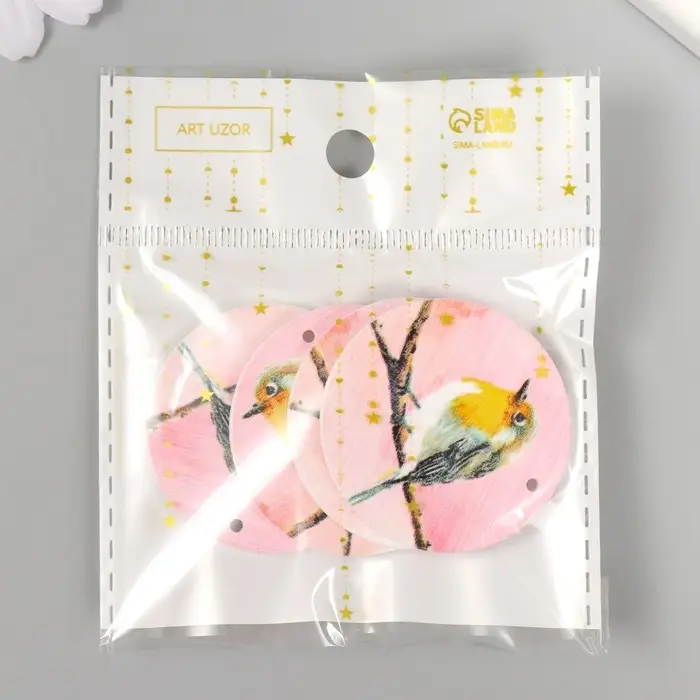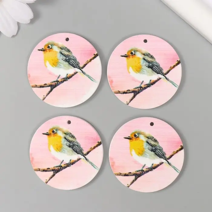 Декор для творчества дерево "Круг. Птичка на ветке" d=4 см