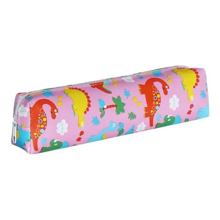 Пенал школьный на молнии Calligrata "Динозавры", розовый