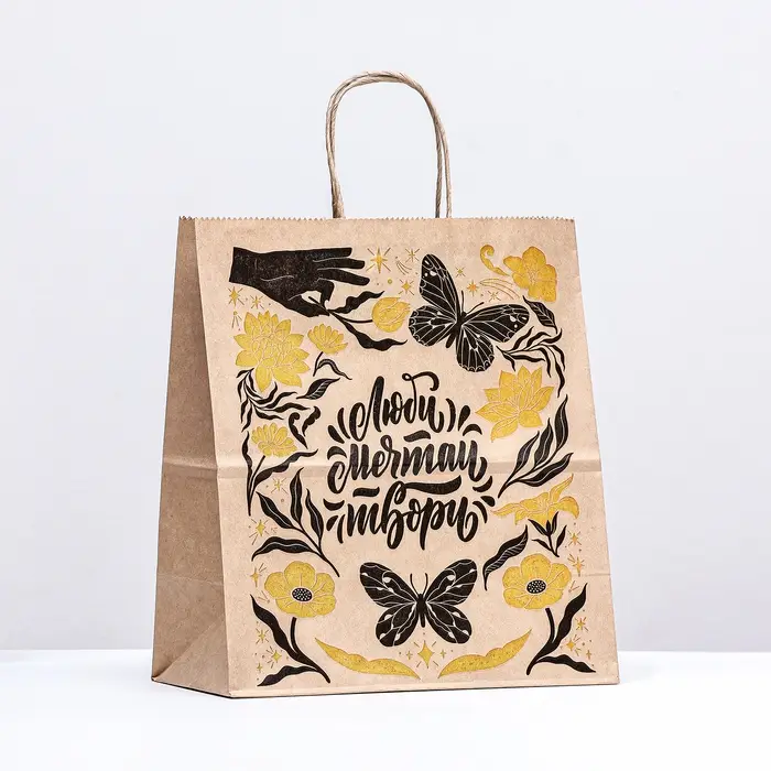 Крафтовый пакет — идеальное сочетание стиля, надёжности и экологической дружелюбности. Изготовленный из первичного материала высокого качества, обеспечивая прочность и устойчивость.