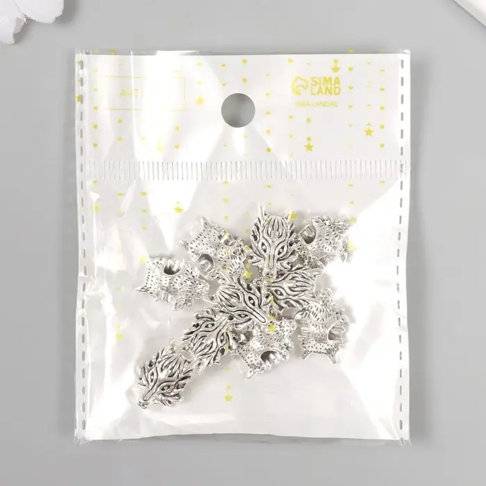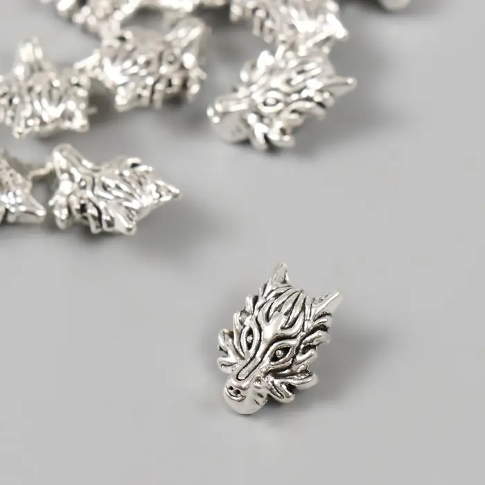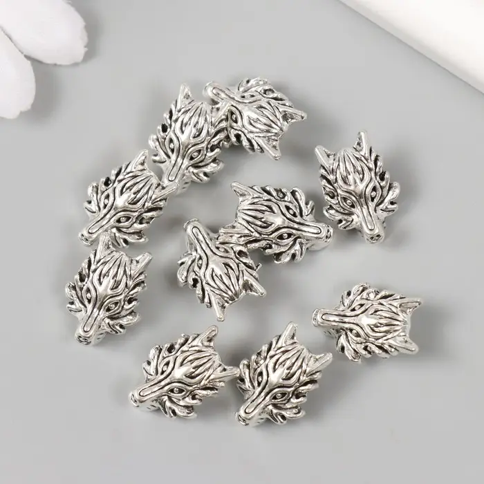 Бусина для творчества металл "Волк" серебро 1,3х1,8 см