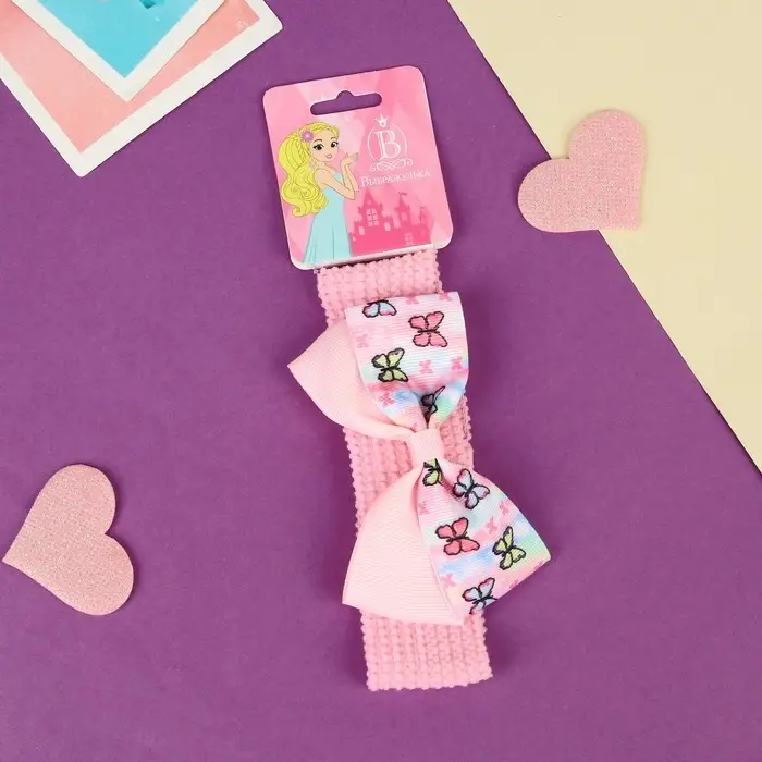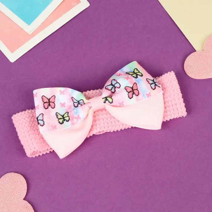 Повязка для волос "Выбражулька" бабочки классик, 16х3 см, розовый