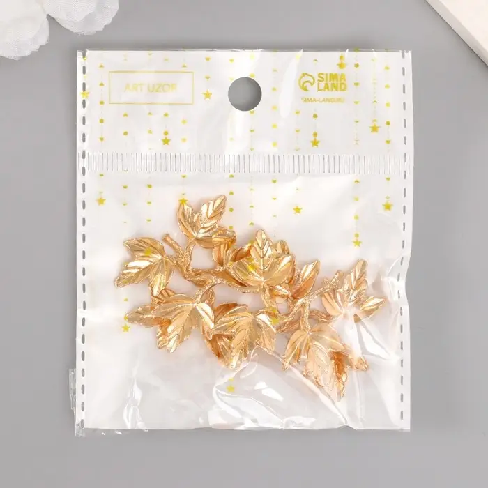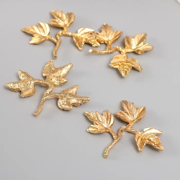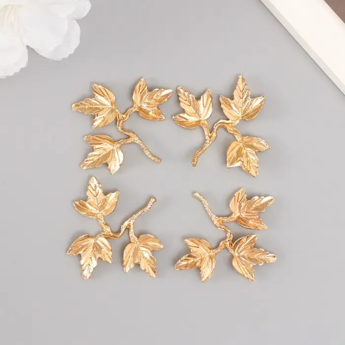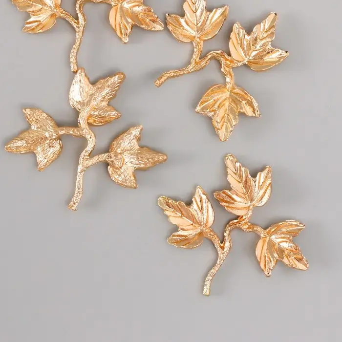 Декор для творчества металл "Веточка с тремя листиками" золото 3,6х4х0,4 см