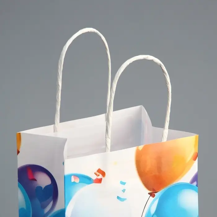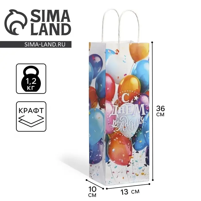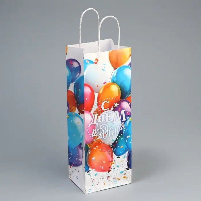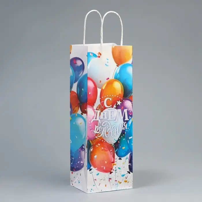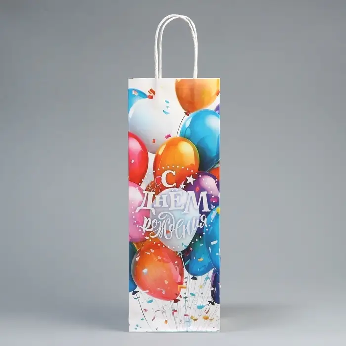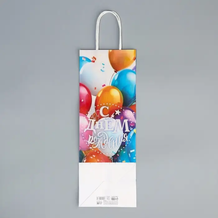 Пакет подарочный под бутылку, упаковка, «С Днём рождения», белый крафт, 13 х 36 х 10 см