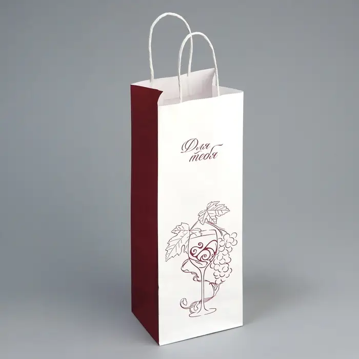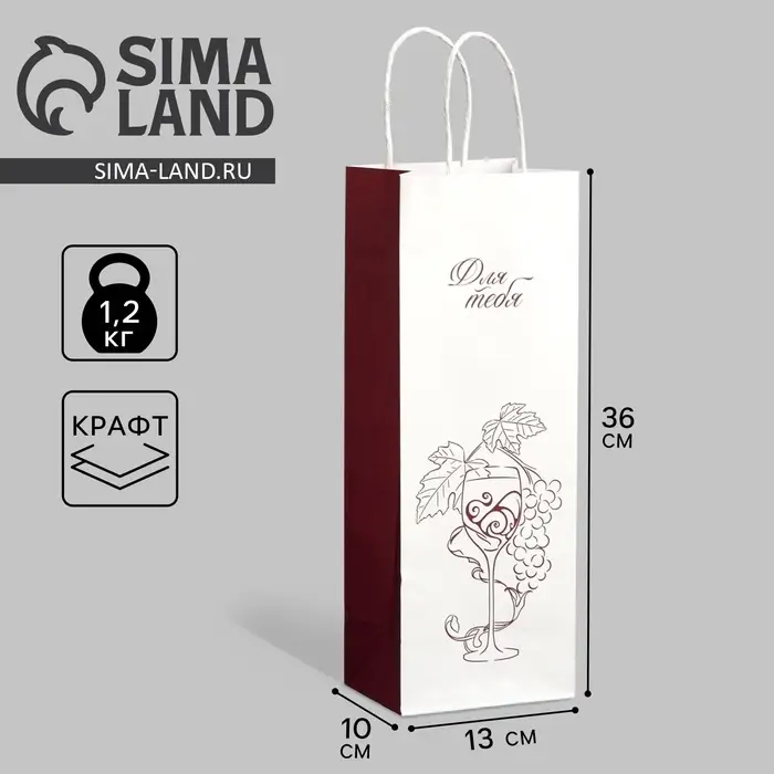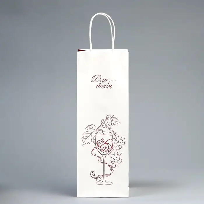 Пакет подарочный под бутылку, упаковка, «Для тебя», белый крафт, 13 х 36 х 10 см
