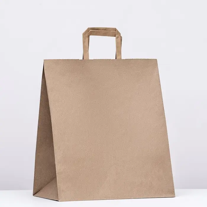 Пакет бумажный, плоская ручка крафт 32×20×37 см, 90 г/м²