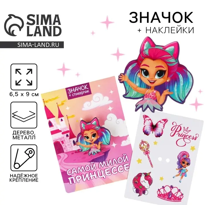Значок с наклейками «Самой милой принцессе», 6.5 х 9 см